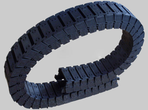 (1)拖鏈外形似坦克鏈,由眾多的單元鏈接組成,鏈接之間轉(zhuǎn)動(dòng)自如。