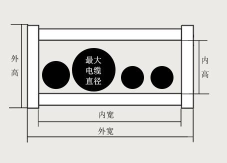 1.根據(jù)電纜的最大直徑確定內(nèi)高尺寸(最大電纜直徑不得大于內(nèi)高90%)