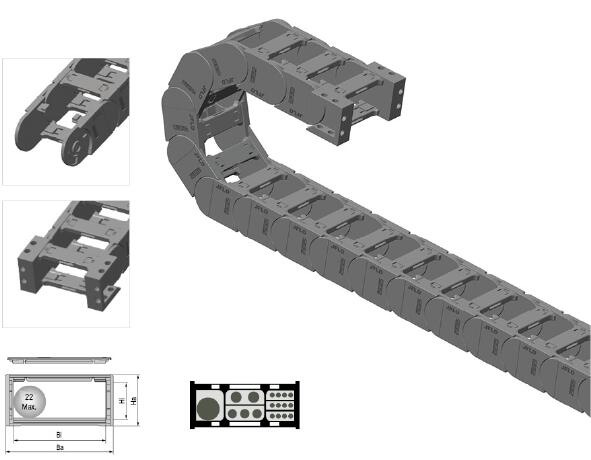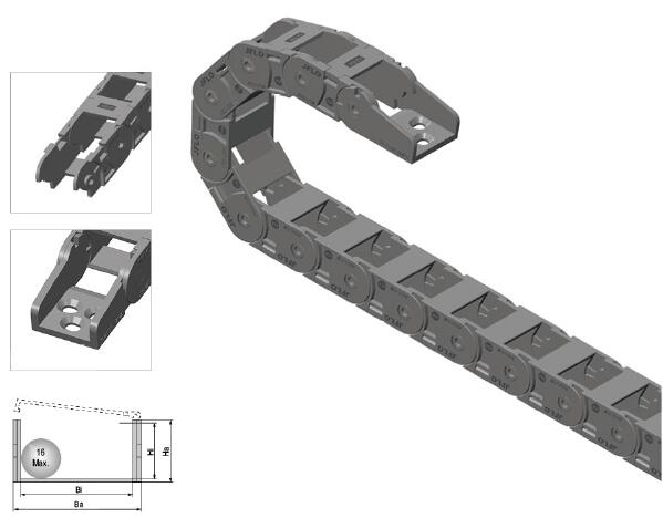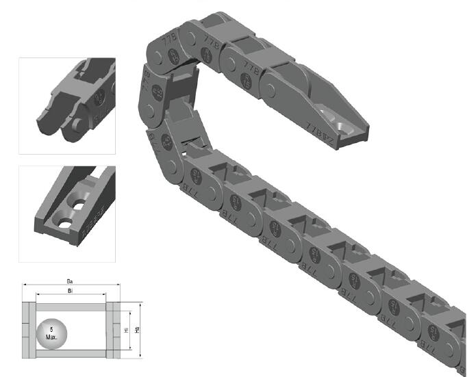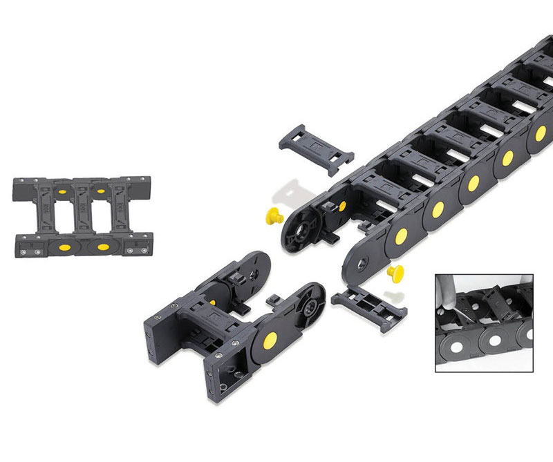 2.可將拖鏈內(nèi)外側(cè)擋片打開,方便檢查或更換電纜;
