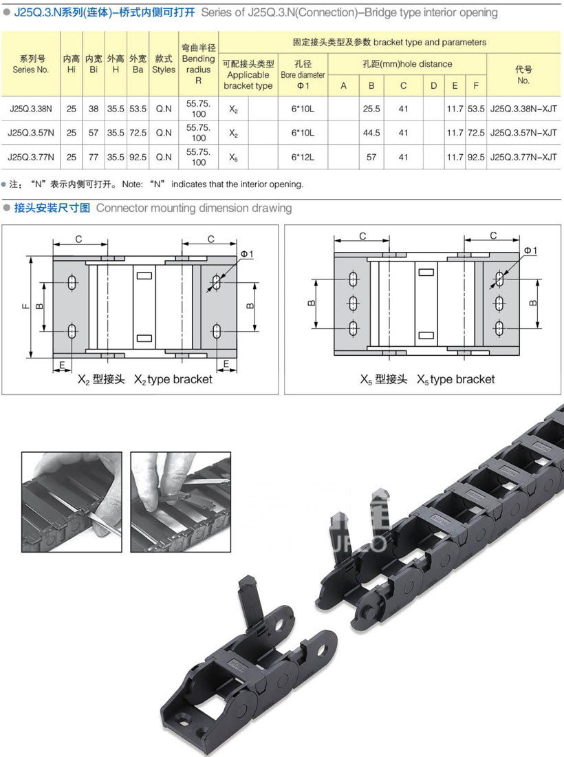 • J25Q.3.N系列(連體)-橋式兩側(cè)可打開拖鏈